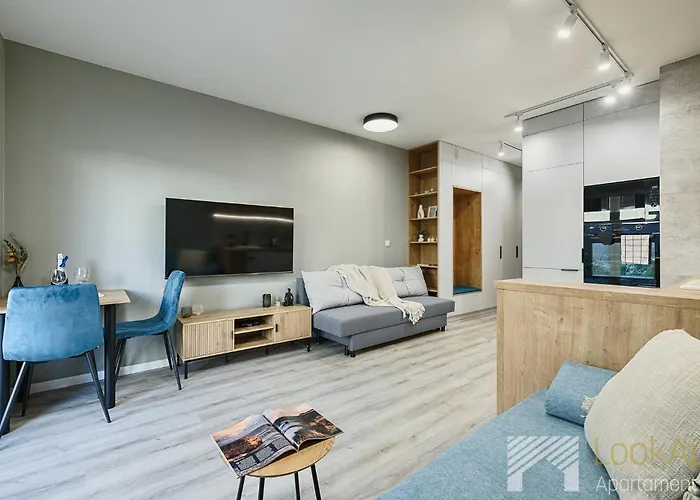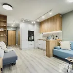 Eine Küchenzeile mit einem Herd und einem Geschirrspüler ist ebenfalls im Slovianka Modern Studio By Lookap - Sauna Oraz Darmowy Parking!! vorhanden. Die Bushaltestelle Kilinskiego - Tymienieckiego befindet sich nur wenige Schritte entfernt von dieser Unterkunft entfernt. Es gibt eine Sauna zur Entspannung nach einem anstrengenden Tag. Eine Terrasse sind im Poolbereich vorhanden.